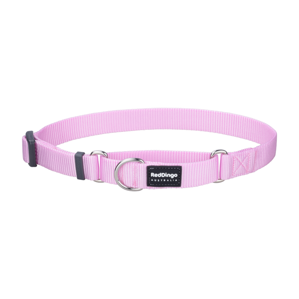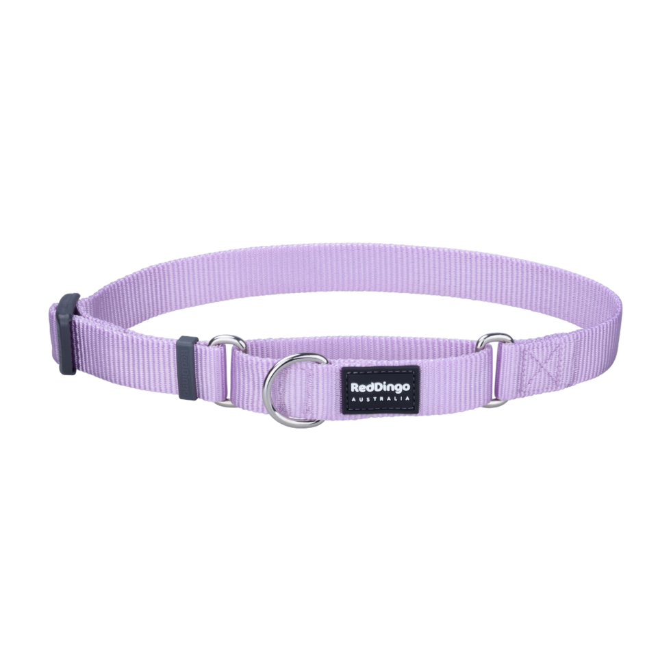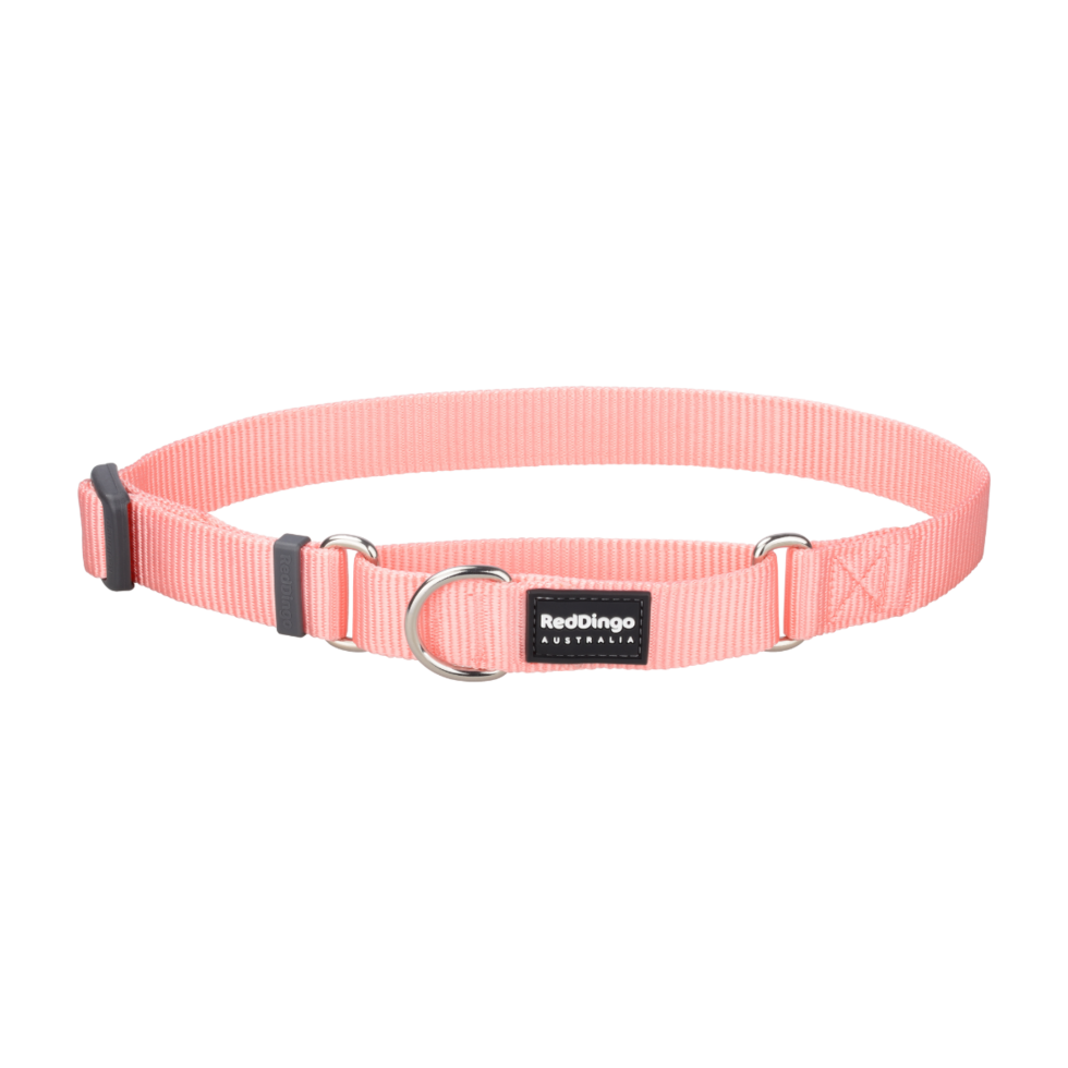 Red Dingo Martingale dog collars are designed for dogs which have a smaller head than their neck, to prevent them from backing out of the collar when on a lead. Made from our soft and comfortable abrasion-resistant webbing with stainless steel hardware which will not rust or corrode. When adjusted, this collar slips over the dog's head as there is no buckle.